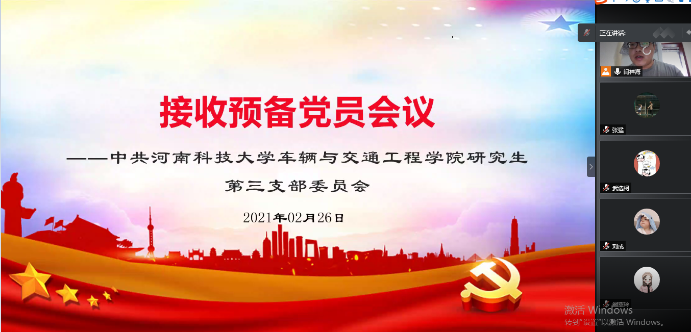 研究生三个党支部和本科生第三党支部分别在线上召开党员大会,接收34名预备党员。会议分别由四个学生党支部书记主持。