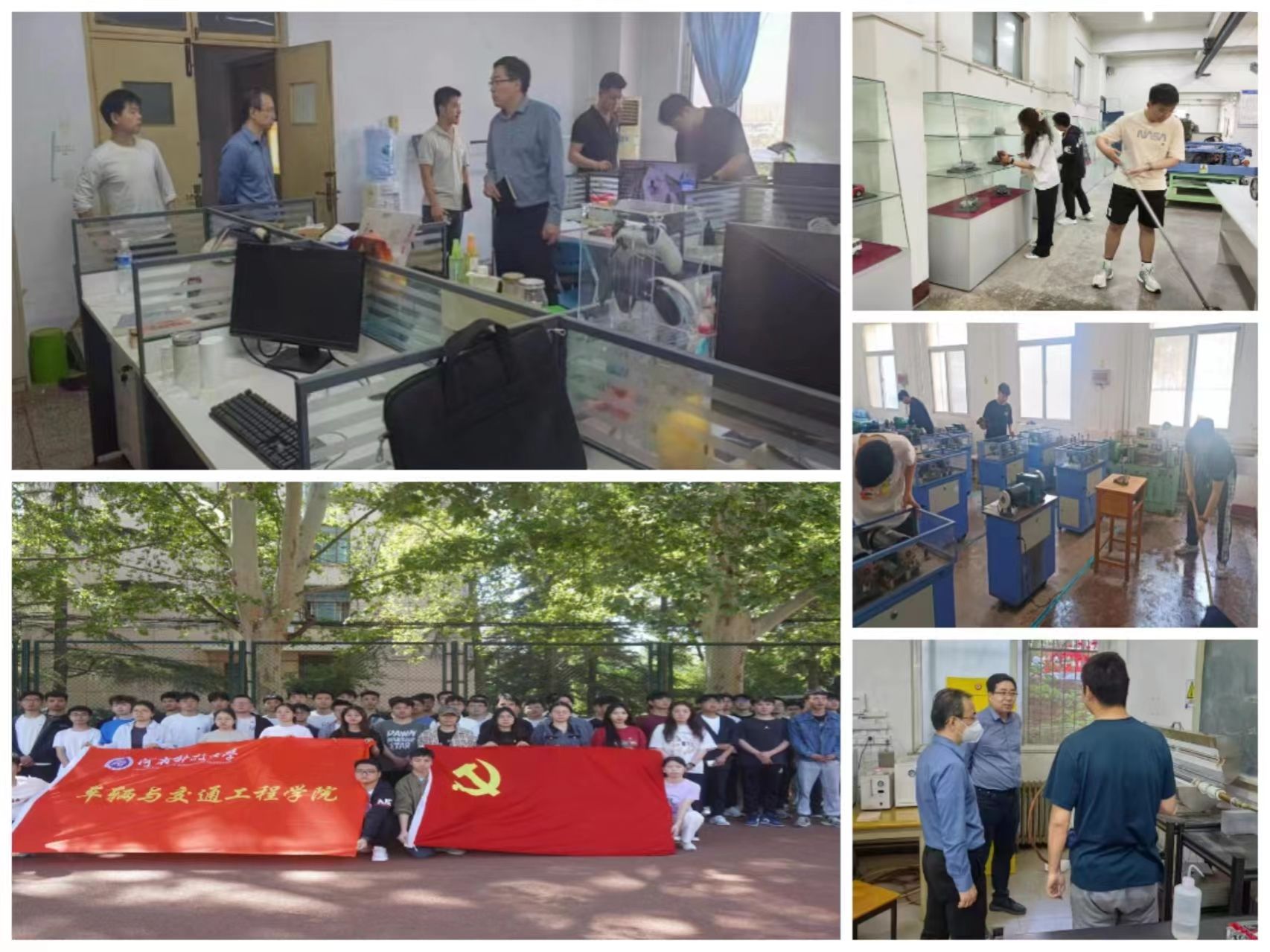 大扫除结束后,学院党委书记冯飞、副院长梁坤峰及区域负责人,共同对学院进行了调研巡查。他们仔细检查了教学设施、实验室设备、研究生工作间以及学生宿舍,并对存在安全隐患的场所提出整改要求。