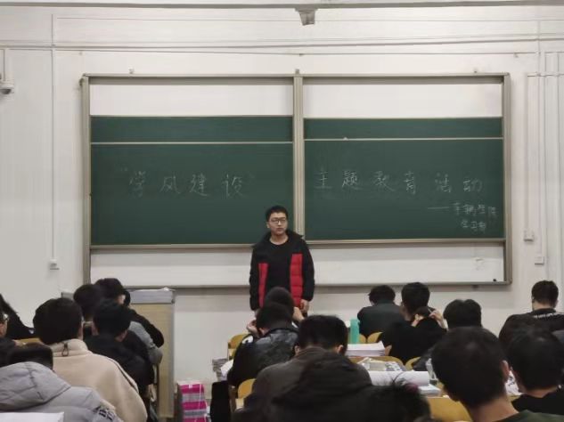 在西苑校区二号楼自习室开展学风建设主题教育。院学生会学习部部长董哲玮和五名学习部成员组成宣讲团就“如何建设优良学风”在车辆学院各班进行宣讲。