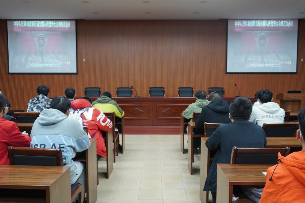 组织2021级学生集中观看宪法宣传教育视频。各班学生代表近一百人在六号楼101会议室集中观看视频,300余名学生在自习室通过手机观看视频。活动由学习部部长董哲玮主持。