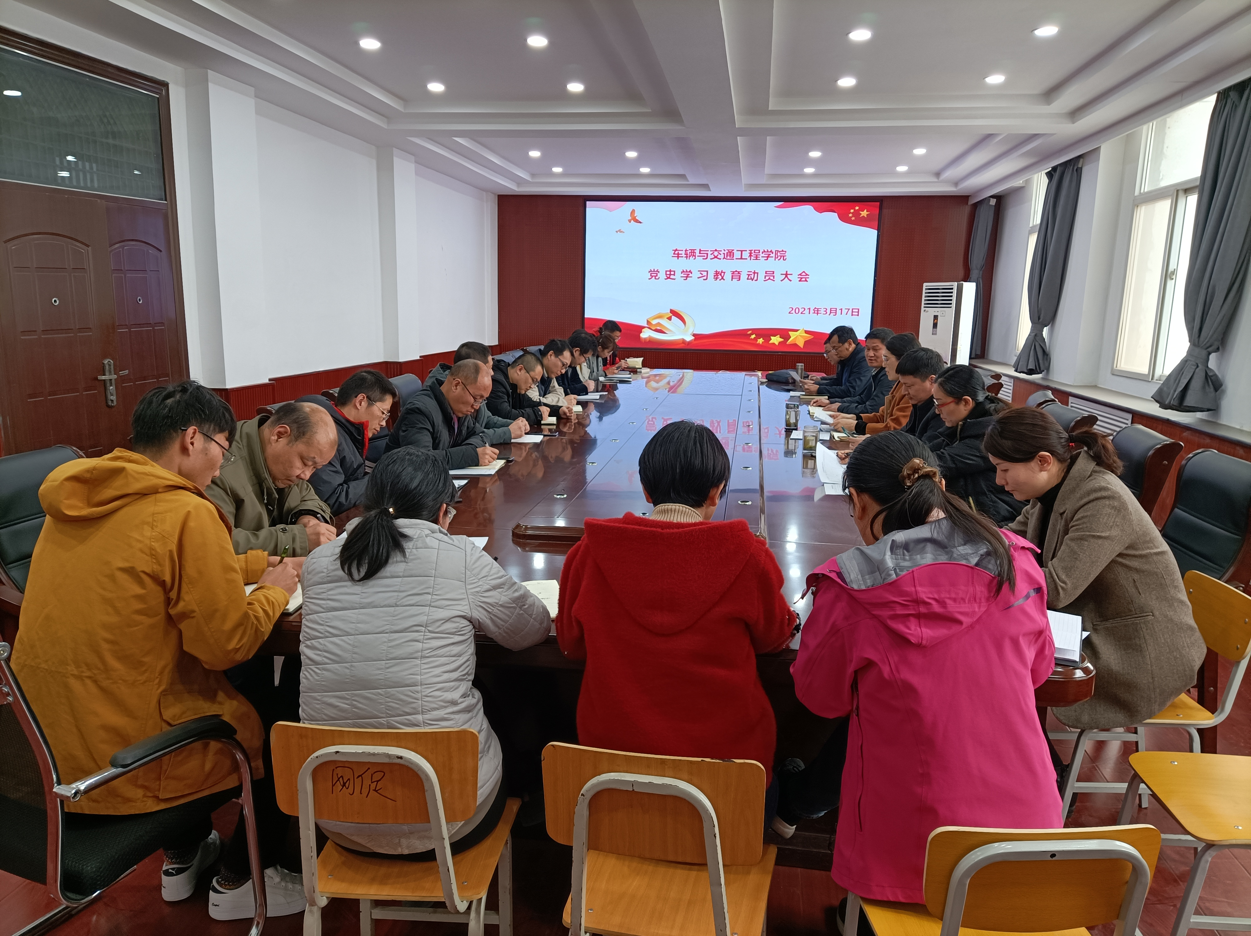 党史学习教育动员大会精神进行了传达。 田志红在动员讲话中就全院扎实开展党史学习教育提出具体要求:一要深刻认识党史学习教育的重大意义。广大党员要牢记教师使命,深刻认识学习党史是贯彻党的教育方针、落实立德树人根本任务的必然要求,从而提高政治站位,增强政治自觉,扎实开展好主题教育。二要准确把握党史学习教育的目标要求。要认真贯彻落实中央、省委决策部署和学校安排,牢牢把握开展学习教育的重点,真正做到学党史、知党情、悟思想、办实事、开新局、跟党走。三要全面落实党史学习教育的各项工作安排。立足教书育人岗位,结合车辆学院实际,高标准高质量完成学习教育各项任务,以昂扬姿态奋力践行立德树人神圣使命。