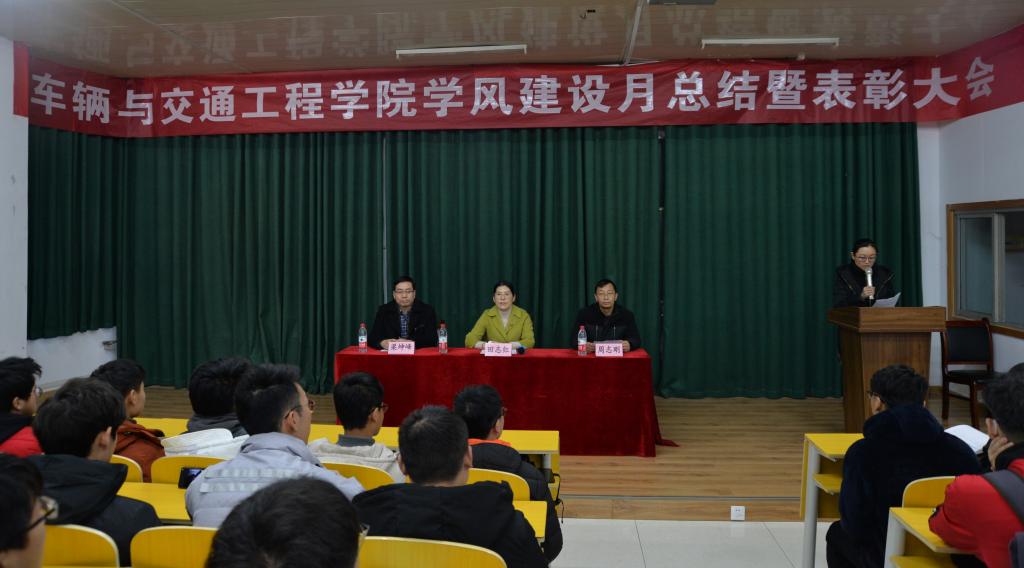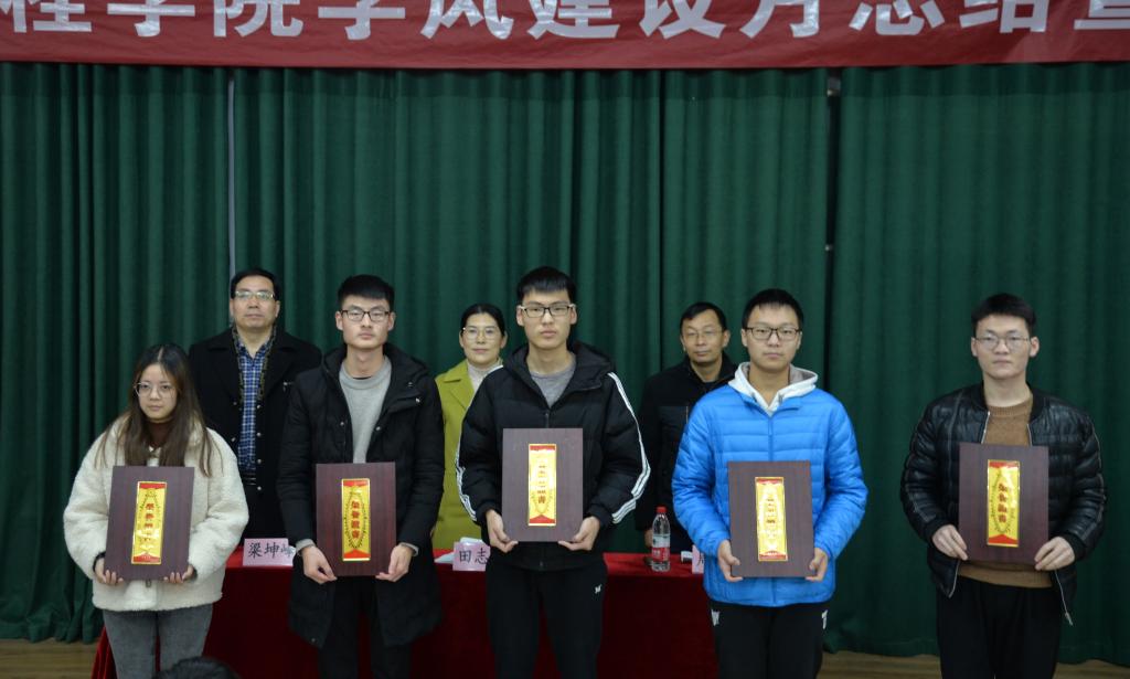 大会开始,伴随着奏起的中华人民共和国国歌,全体人员起立,奏唱国歌。随后由副院长周志刚老师宣读关于表彰在2020年学风建设活动中表现突出的优秀集体和先进个人的决定。梁坤峰老师则宣读了关于表彰2020年在各类竞赛中获得优异成绩的优秀团队和先进个人的决定,表彰了学院在学术类竞赛领域取得成绩的团队和个人。宣读完毕后,各领导老师先后给学术竞赛类获奖代表和优秀班集体,优良学风班获奖代表颁奖,并合影留念。之后,优秀学生代表上台做学习经验交流发言,交通192班的张晶亮同学和热发181班的冯浩同学向同学们分享了自己的学习经验和学习方法。最后由学院党委书记田志红老师讲话总结,田书记总结了学风建设月举办的特色活动与取得的成果,同时强调考试诚信问题,希望同学们能做到诚信考试,在即将到来的期末考试中取得好成绩。讲话结束后,全体人员奏唱校歌,大会圆满结束。