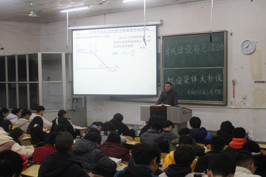讲课开始后,党老师结合近几年车辆学院机械设计的高挂科率,向同学们说明这门课程的难度和重要性,希望提高同学们的警惕,强调同学们应该重视机设这门课程,随后,老师为参加培训班的同学们系统的讲解了机设的重点和知识点,同学们也认真的做好了笔记。接着,老师针对同学们提出的问题进行了耐心、细致的讲解和答疑,并结合往年的试卷和优秀学生的学习经验,为那些学习有困难的同学提出建议,总结了学习方法。最后,老师希望大家调整好心态,合理规划自己的时间,认真复习,做到机设不挂科、争高分。活动结束后同学们表示将继续积极对待这门学科,在课后复习中更加努力认真。