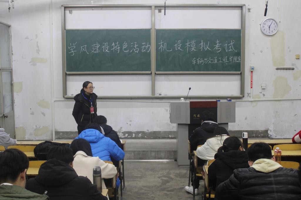 在6号楼201教室开展学风建设特色活动机设模拟考试。本次模拟考试由学工办副主任兼17级辅导员董文铮担任监考老师,18级部分学生参加。