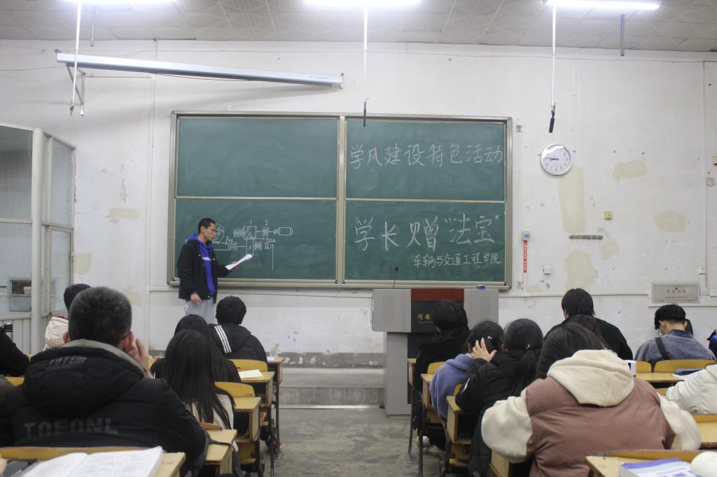 在6号楼201教室开展学风建设特色活动学长“赠法宝”活动。本次活动由学工办副主任17级辅导员董文铮老师出席,张晁玮同学担任主讲人,18级部分学生参加。