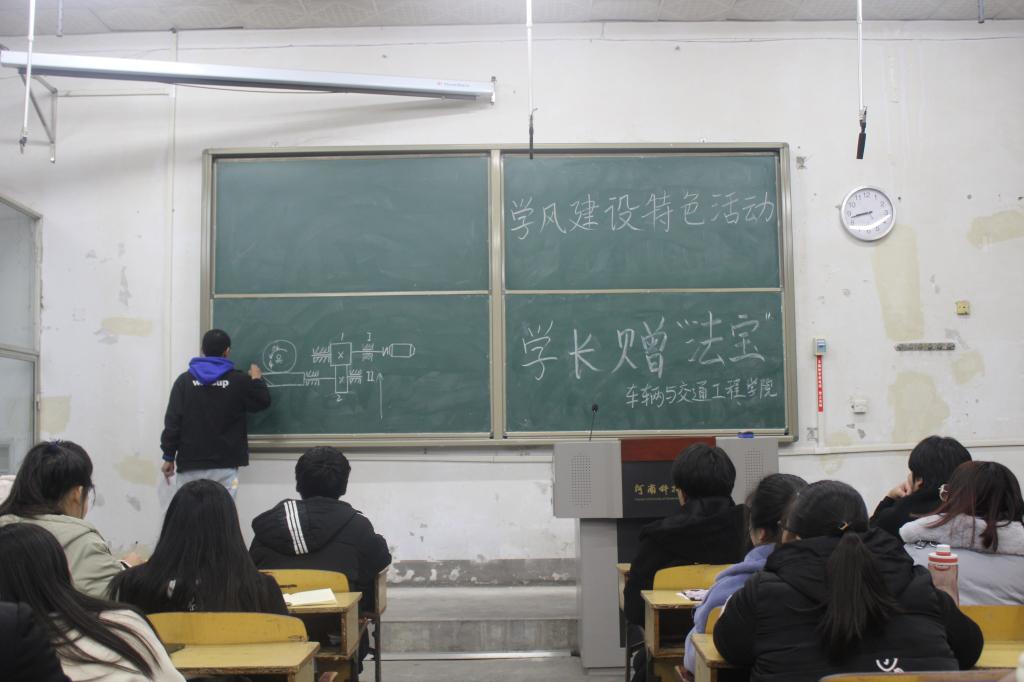 活动第一项由董文铮老师介绍了本次主讲人张晁玮。张晁玮取得车辆学院保送研究生的名额,曾在机械设计期末考试中获得95分的优异成绩。取得这样的好成绩得益于他高效的学习方法和对专业知识敏锐的理解能力。张晁玮表示,机械设计之所以挂科率高,是因为这门课程涉及的知识面广,一些知识点研究的深度高,课堂上很难吸收消化大量的内容。这就要求我们必须在课下花费大量的时间复习课堂中遗漏的知识。在机械设计的学习中,他建议各位记忆与理解相结合,把书上生硬的概念用形象易懂的模型来代替,这样做很容易达到事半功倍的效果。在答题过程中结合考试内容量大的实际,他建议我们不要在一道题上浪费过多时间,尽量用最快的速度读完所有题目,把自己有把握的分数牢牢拿到。同学们受益匪浅,表示将在今后的学习中应用这种高效的学习方法。