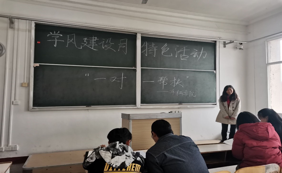 自11月29日起在2号楼自习室为同学进行一对一学习帮扶。学院学习落后同学和学业优异的同学参加此次帮扶活动。