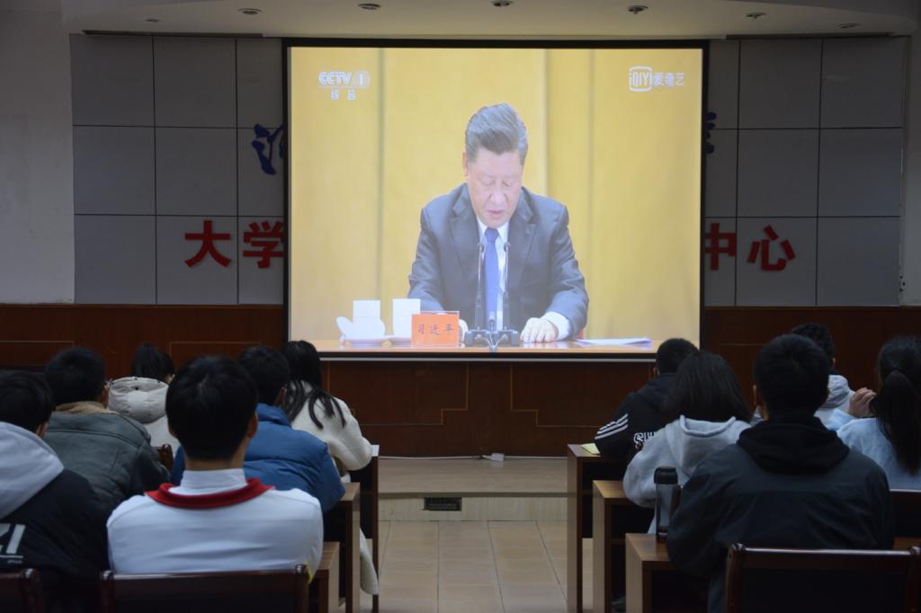团委组织第十八期团校团员在西苑校区6号楼101室学习习近平总书记在纪念中国人民志愿军抗美援朝出国作战70周年上的讲话精神。