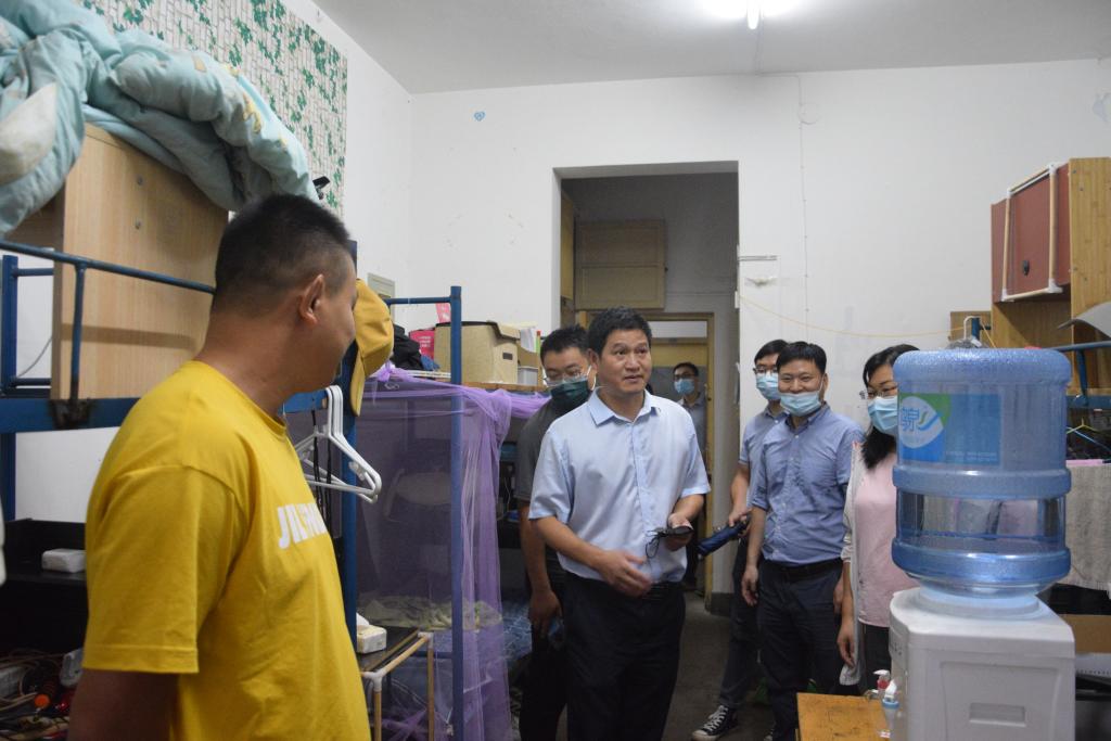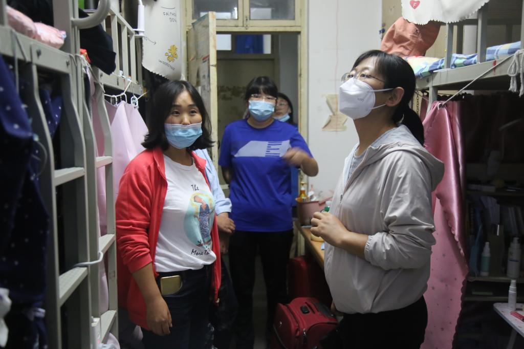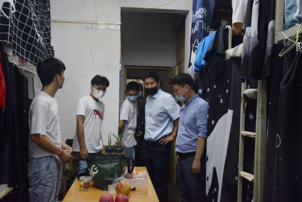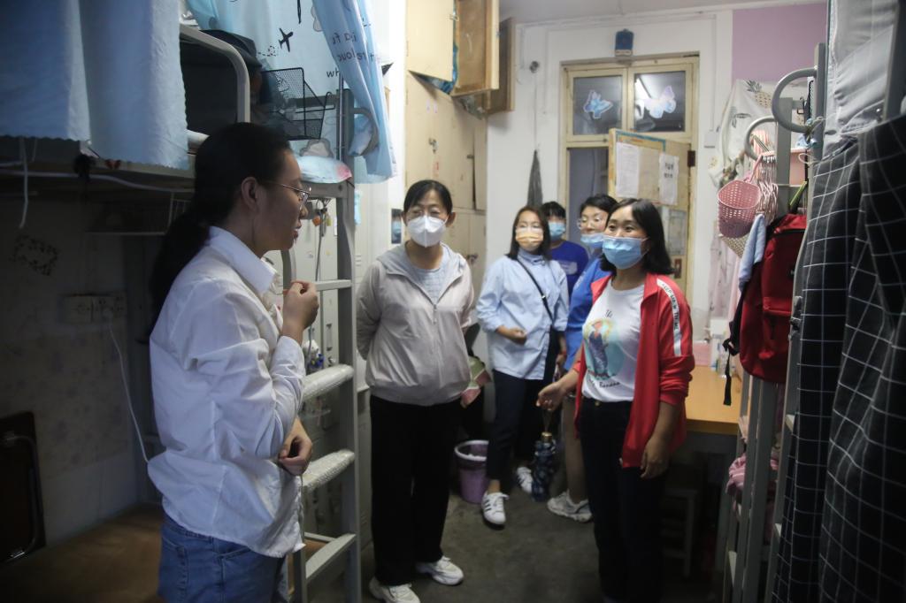院长徐立友、党委副书记陈建峰,以及学院学生公寓网格化管理二级网格长等一行前往西苑校区学生公寓南院4号楼、北院11号楼看望返校学生,并进行宿舍安全卫生检查。车辆学院的领导老师们在寝室里了解了学生的思想状况,强调了宿舍卫生安全,重点讲了学校的疫情防控要求。领导老师提醒学生们在疫情期间要注意宿舍卫生,做到宿舍及时打扫、垃圾及时处理,保证宿舍的整洁卫生,为自己提供一个舒适的住宿环境;告诫学生们不能在宿舍乱拉电线,不要在宿舍使用大功率电器,并说明学校会尽快为每个宿舍安装上空调,并且准备了新的床铺给同学们更换。最后,领导老师们表示,如果在生活中遇到什么困难,要及时向老师反应,老师会帮助同学们解决问题,学校也将会为大家提供一个良好的学习环境和舒适的生活环境。