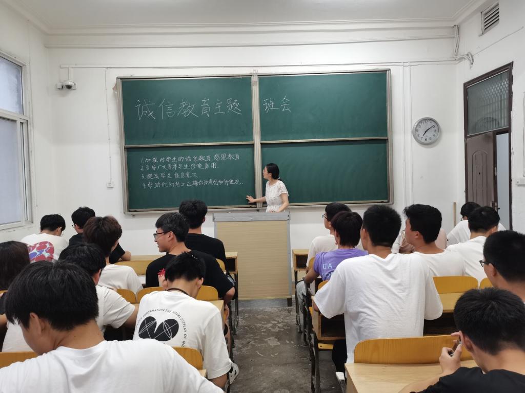 在各班自习室开展了“诚信教育”主题班会。班会由各班班长主持,学院全体学生参加。