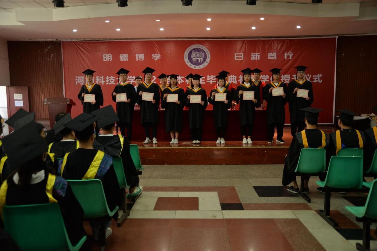 伴随着激昂的音乐,学院领导为校级、省级优秀本科毕业生颁发荣誉证书。
