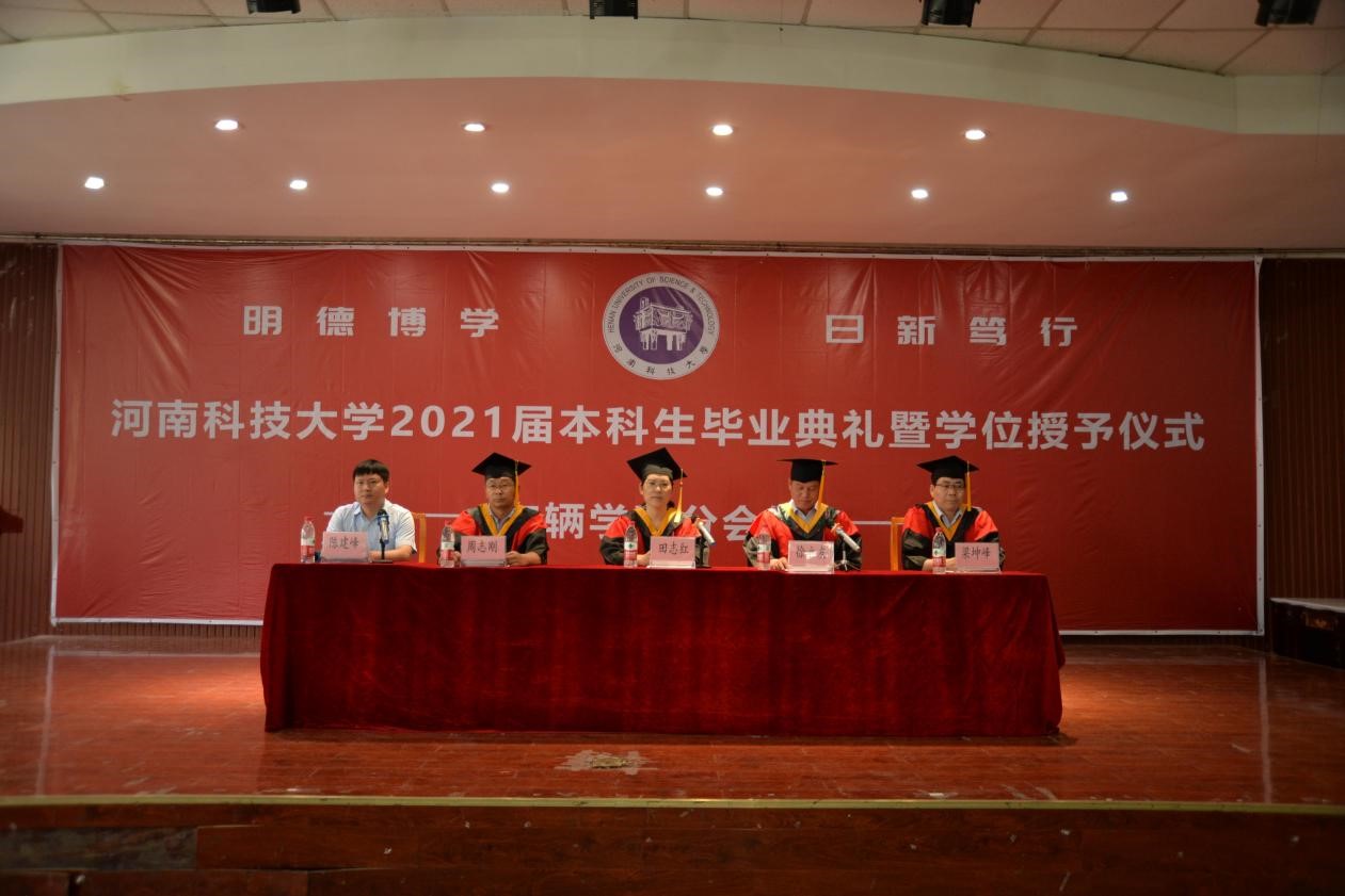 在西苑校区大学生活动中心举办2021届本科生毕业典礼暨学位授予仪式。学院党委书记田志红、院长徐立友、副院长周志刚、副院长梁坤峰出席典礼。车辆工程系主任郭占正老师、副主任杨青霞老师,交通运输系主任吴延峰老师、热能工程系主任李健老师、动力机械及工程系主任刘方杰老师,学院全体辅导员老师和2021届全体毕业生参加典礼。典礼由学院党委副书记陈建峰主持。