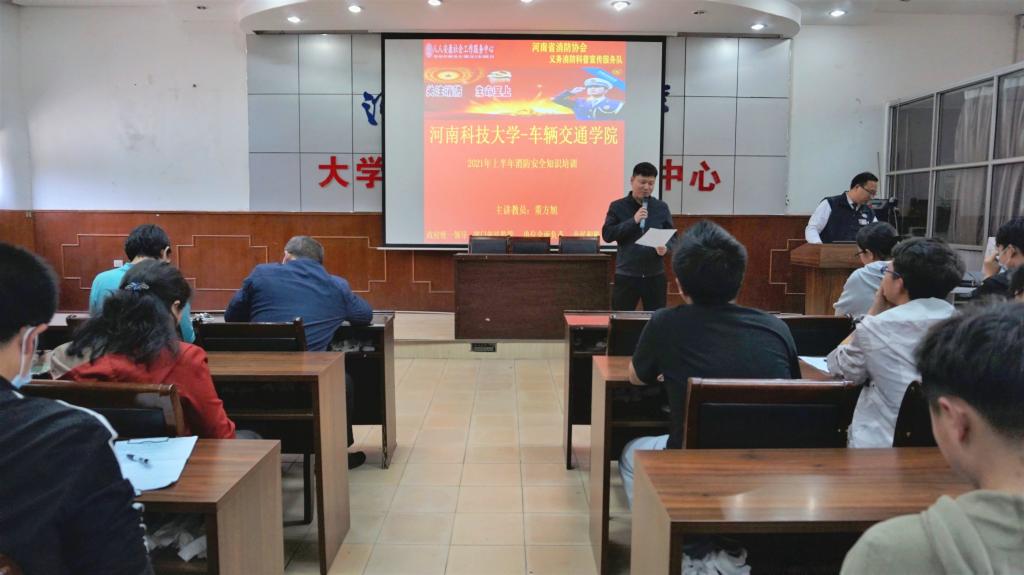 在西苑校区6号楼101会议室举办消防安全知识讲座。由河南省消防协会义务消防科普宣传服务队董方旭主讲,车辆学院全体教师及学生代表参加,车辆学院党委副书记陈建峰主持。