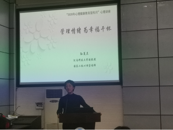 10月30日下午4:00,ace动漫 组织同学积极参加以“管理情绪,为幸福干杯”为主题的心理健康讲座,本次讲座是在开元校区公教3区学术报告厅举行,由国家二级心理咨询师孙夏兰副教授主讲。
