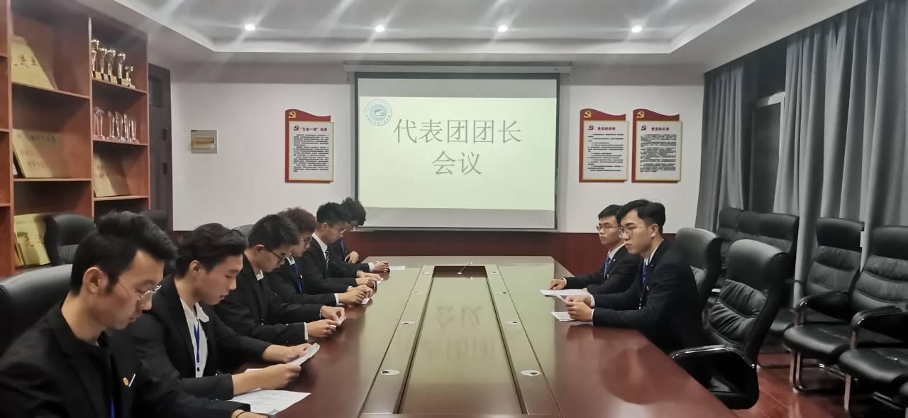 在2号楼226会议室召开代表团团长会议。现任学生会主席谢绍辉、各代表团团长、副团长文绿豪、路展飞、王旭、袁珍珠、蒋辰、徐晓龙参加会议。大会由学生会主席谢绍辉主持。