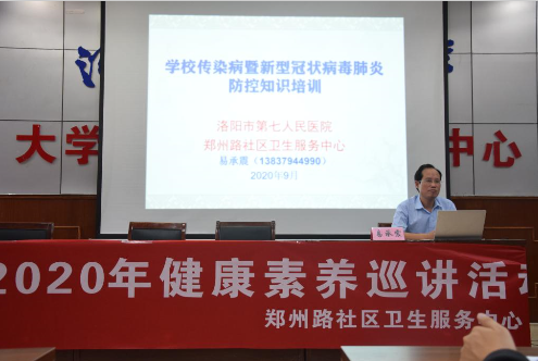 易承震给同学们普及了新冠肺炎和AIDS病发病症状、感染渠道、防控措施等知识,并通过分析两种病情在洛阳市的感病现状,告诫在座的同学一定要养成健康文明的生活方式和行为,确保自己和其他同学的健康安全。针对新冠肺炎疫情,他根据学生这一特殊群体的特点,为学校制定了秋冬季新冠肺炎疫情防控技术方案,包括:防疫物资储备、环境卫生整治、开展个人防护与消毒等知识和技能培训、自我健康监测等。