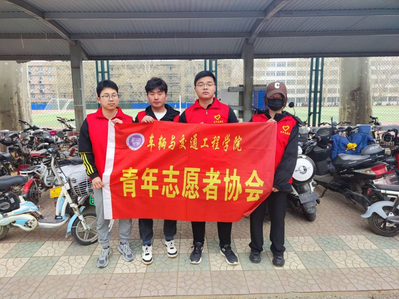青年志愿者协会在西苑校区南院停车区开展“共建文明校园”活动。学院青年志愿者参加活动。