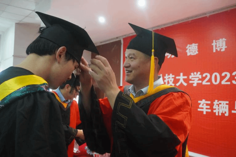院长徐立友、副院长周志刚、王学涛、梁坤峰为学院2023届学士学位获得者正冠拨苏、授予学位,并合影留念。