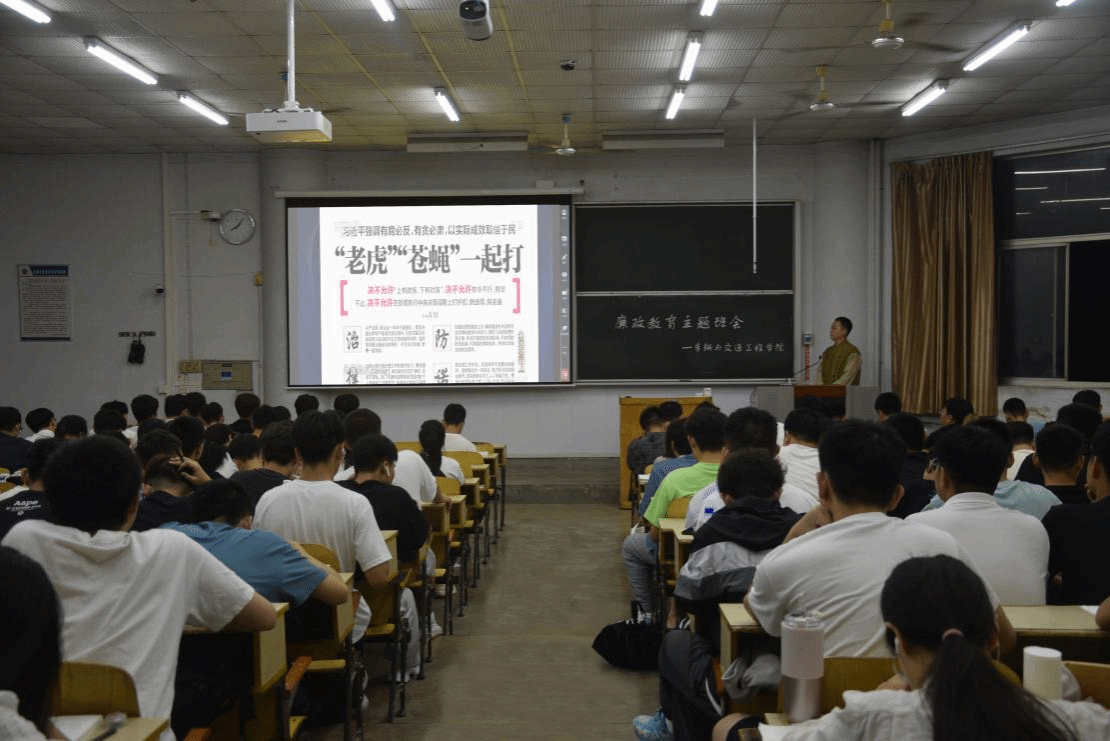 主题班会上,通过观看廉政教育主题纪录片《永远在路上》将大学生廉洁教育和思想品德教育融为一体。观看结束后,宋织群强调,同学们要将廉政思想紧扣学习生活实际,夯实“公平正义、诚信友爱”的道德基础,自觉提高廉洁公正素质和抵御腐败的能力。