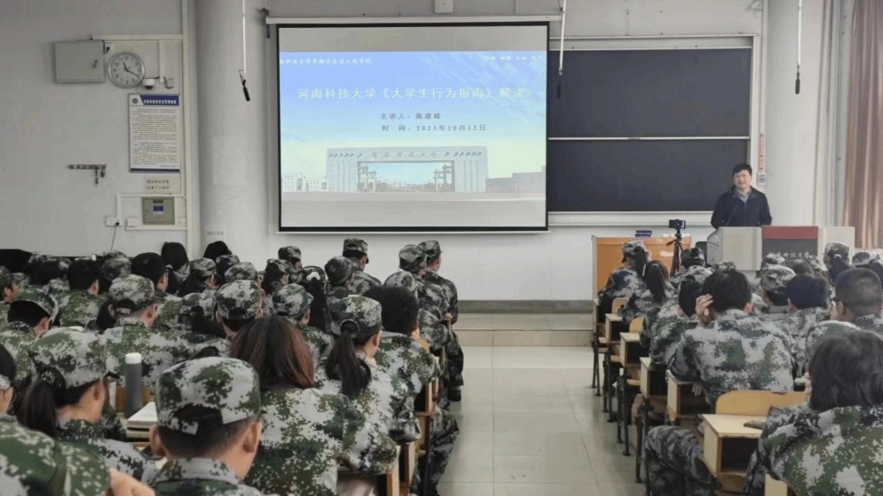 陈建峰首先强调了学习《大学生行为指南》的重要性,并指出了学习的重点。随后,他分别从总则、学生的权利与义务、学籍管理、校园秩序与课外活动、奖励与处分、学生申诉、附则为大家做出详细讲解,使同学们对《大学生行为指南》有了更深刻的认识。最后,他倡导同学们自觉遵守规章制度,养成良好的生活习惯。