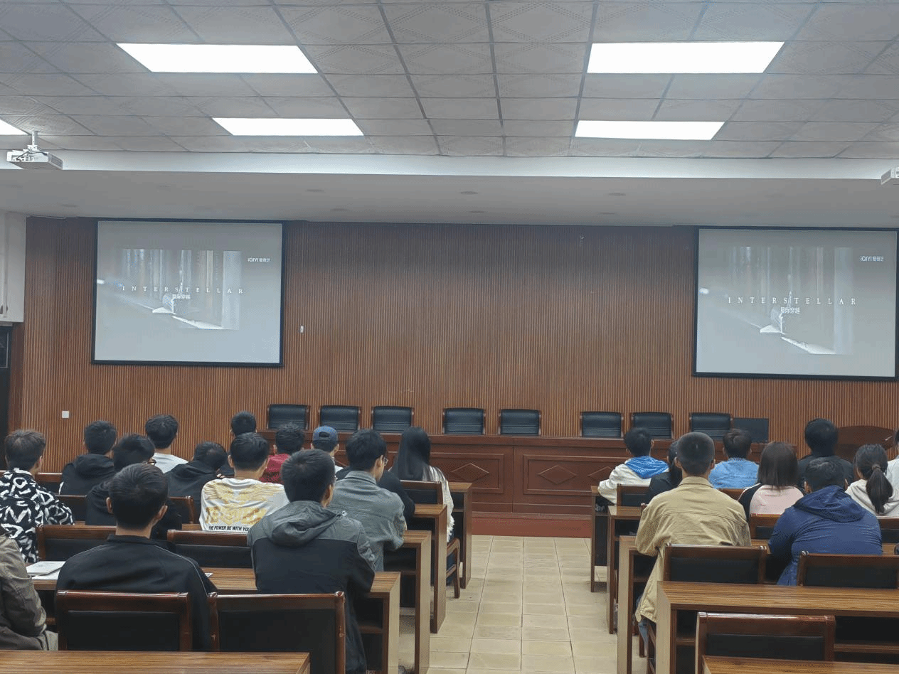 心理健康部部长鲁毅豪为到场同学播放影片《星际穿越》。该电影讲述了在地球环境恶劣的未来世界,主角库珀不得已离开了自己的孩子,与布兰德一行人前往太空为人类寻找一个适合人类居住的星球。在此过程中,库珀与布兰德等人克服种种困难,并与女儿墨菲在超立方体的五维空间中利用引力与爱,拯救地球的故事。观影过程中,同学们专心致志、聚精会神,被电影情节深深吸引,被电影主角们的无所畏惧和探索精神感动。