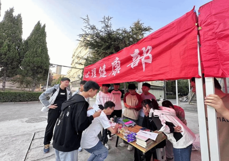 组织心理健康部在西苑校区南院餐厅门口举办“共护心灵港湾,融梦启航未来”主题活动。