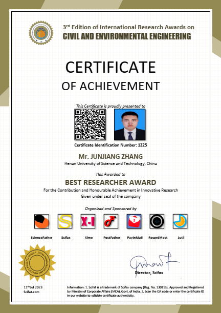张俊江博士荣获2023年国际学术 “BEST RESEARCHER AWARD”