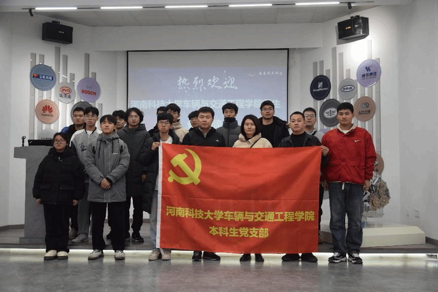 “智”愿青盟社团党支部全体党员赴河南易泰汽车科技有限公司开展实践交流。社团党支部书记索榕、23级辅导员宋织群带队参加。