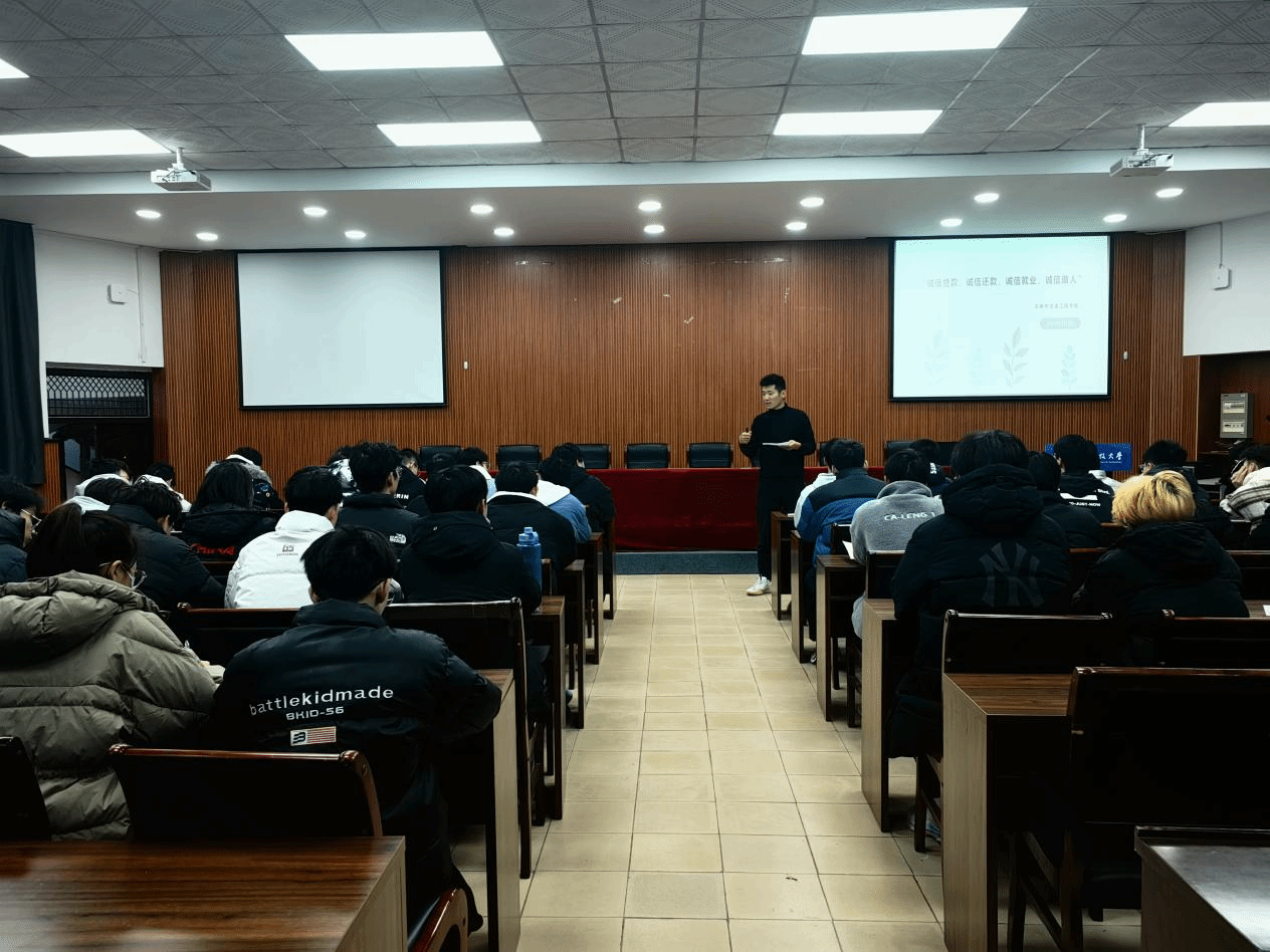 在6号楼101会议室举办了“诚信贷款,诚信做人,诚信还款,诚信就业”教育大会。2022级辅导员张亮亮和学院100余名贷款学生代表参加会议。
