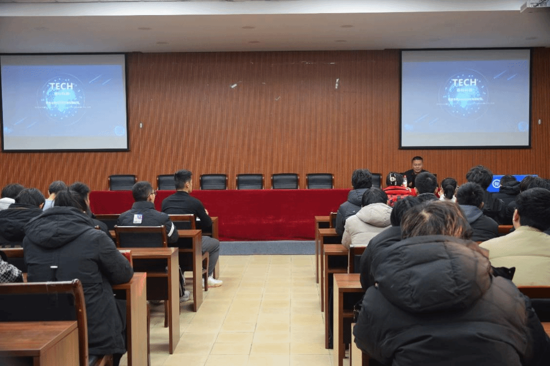 冯亮分别从产品研发、行业发展和专业应用等多个方面讲述他一路走来的就业创业历程。首先,他介绍了公司为宝武集团和中信重工设计生产的专利产品,并指出“工欲善其事必先利其器”,学好专业知识将会成为我们竞争时的最大优势。随后,他向同学们分享了他进入工作岗位后的心得体会,他强调作为理工科的我们要学会走出校园,开阔眼界,了解行业的发展状况。最后,他讲述了公司名称背后所代表的意义,并鼓励同学们一定要树立阶段性的目标,扎实完成每一项工作,不可眼高手低半途而废。