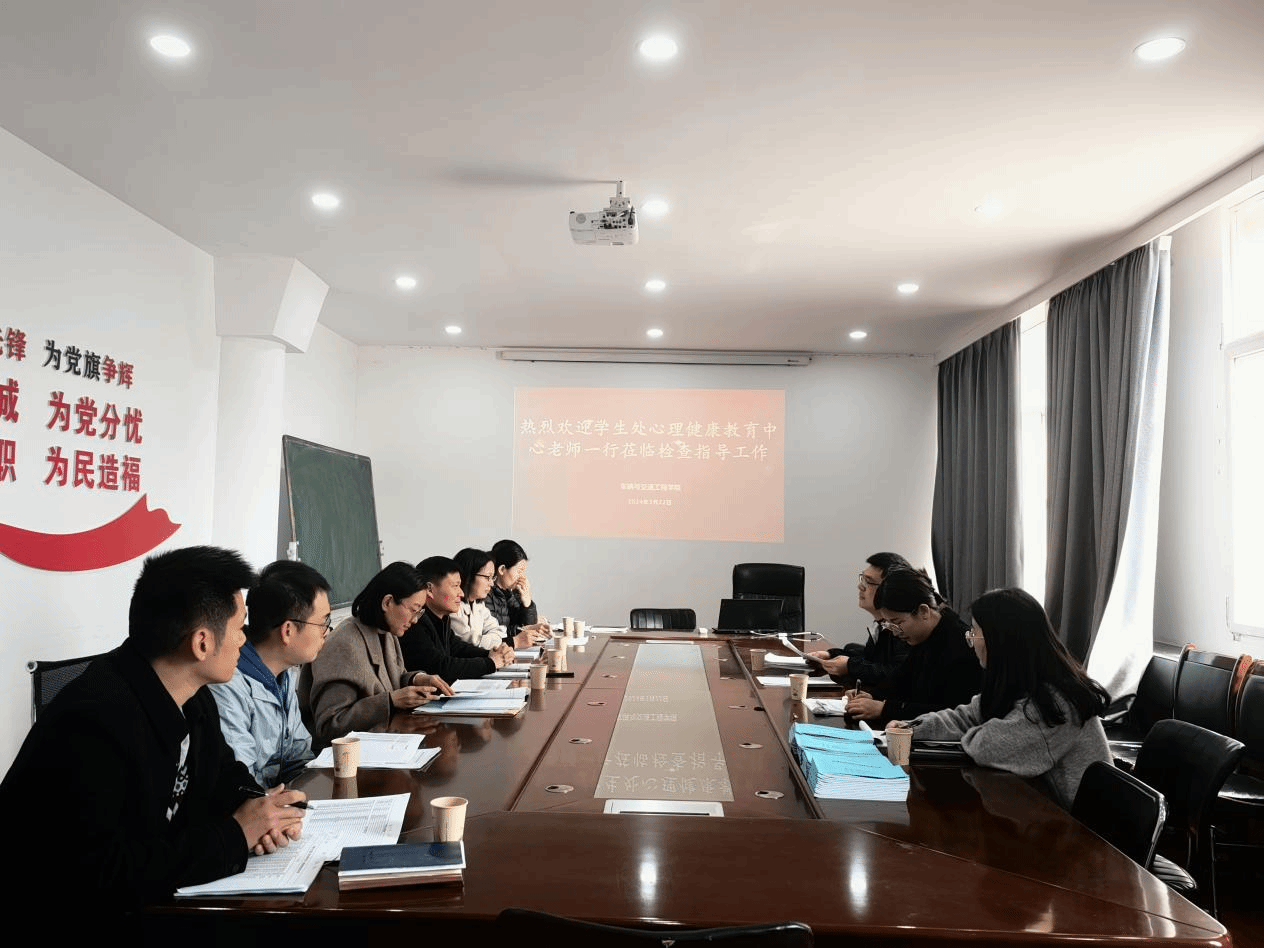 副书记陈建峰、全体辅导员在西苑校区2号楼235会议室与学生处心理健康教育中心王旭江、宋佳璐、王玉玉老师一行举行座谈会。