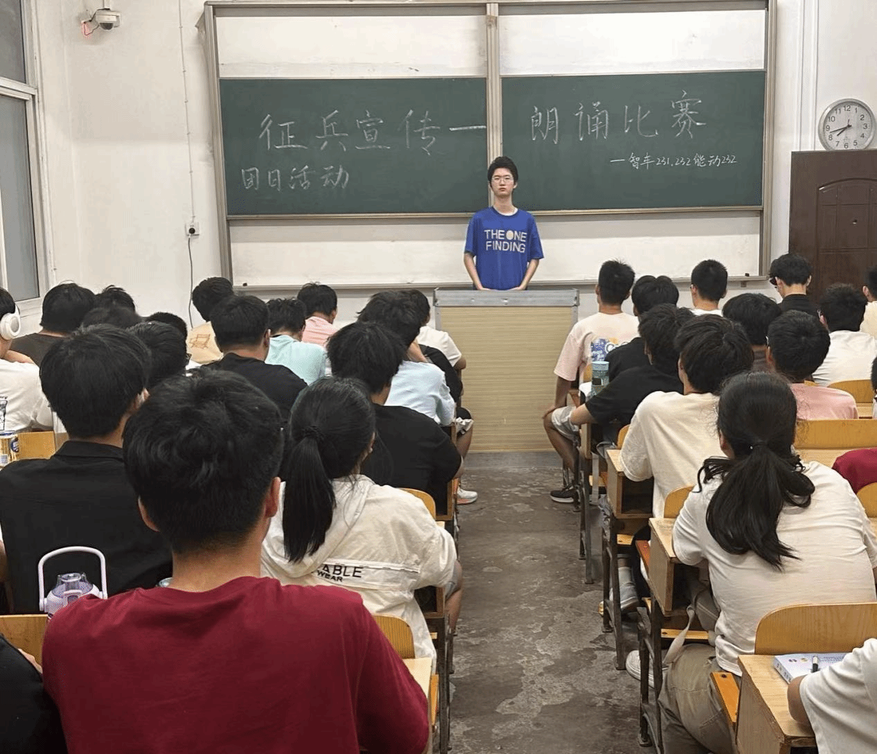 13日晚上,各个班级举行征兵宣传——朗诵比赛团日活动,朗诵者的深情朗诵使同学们明白讲党性、讲国防、讲参军报国的重要性。
