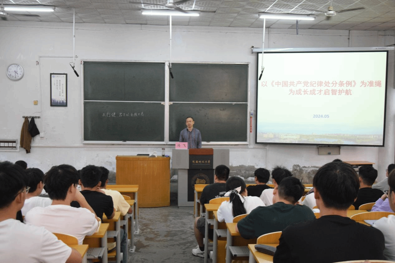 在6号楼102开展了“以《中国共产党纪律处分条例》为准绳,为成才成长启智护航”专题讲座。本次讲座由学院党委书记冯飞讲授,学院全体入党积极分子和发展对象参加讲座。