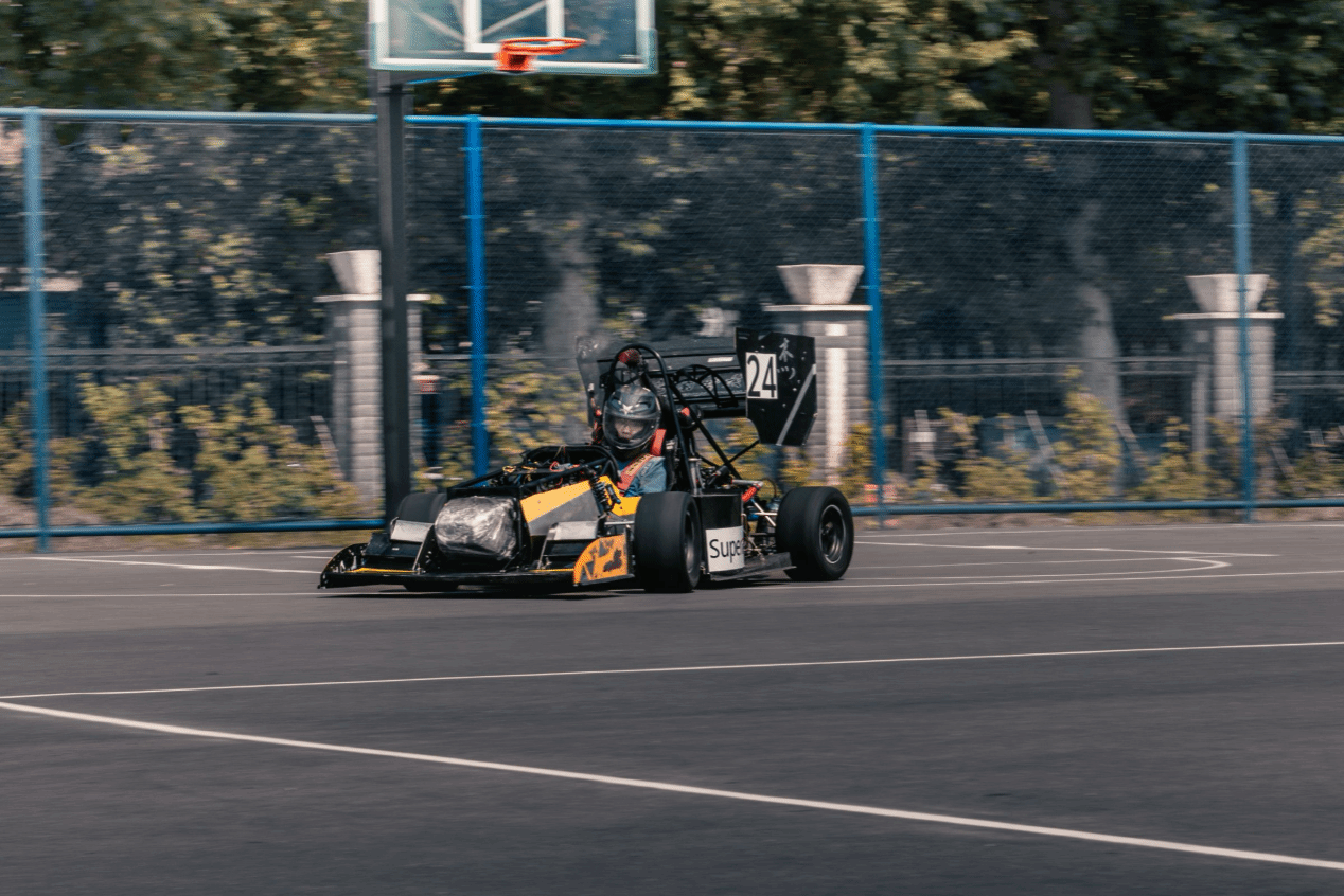 河洛风赛车队在西苑校区篮球场举办赛车知识普及活动。