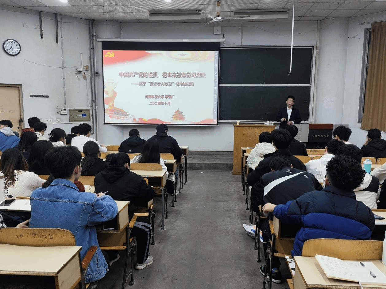 李瑞广首先聚焦中国共产党的性质,清晰阐述了中国共产党作为中国工人阶级与中华民族的先锋队,在中国特色社会主义事业中占据的核心地位,始终代表最广大人民的根本利益。随后,李瑞广深入剖析了中国共产党的根本宗旨——“全心全意为人民服务”。他强调,这一宗旨不仅是历史赋予的选择,更是时代进步与发展的必然要求。它要求全体党员必须将人民利益置于心中最高位置,以实际行动满足人民的期望与需求。最后,李瑞广详细阐述了党的指导思想。他指出,习近平新时代中国特色社会主义思想是党的理论创新的最新结晶,是我们开展工作、推动社会发展的根本遵循。通过结合实际案例,他进一步阐释了如何将这些理论成果应用于现实工作中,引导同学们树立正确的价值观与世界观。