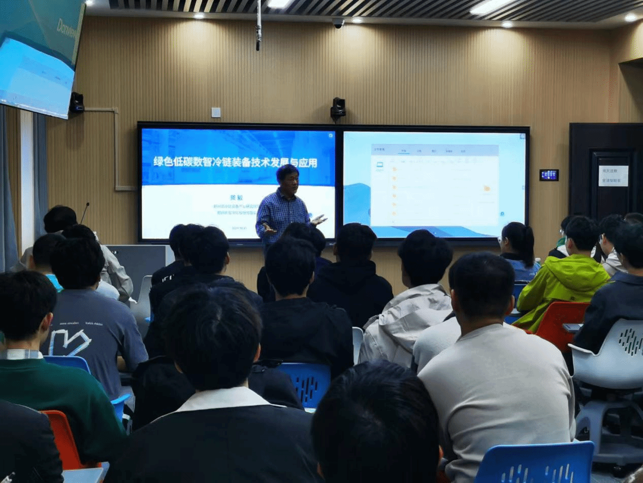 龚毅首先简单介绍了郑州凯雪冷链装备产业研究院的基本情况。随后,他从冷链产业化与食品产业链、冷链装备的基本情况、节能减排、绿色低碳、可再生能源及储能蓄冷和网络信息化等方面重点讲述了绿色低碳数字冷链装备的技术发展与应用。最后,他鼓励同学们积极投身冷链物流领域的研究和创新工作,并分享了自己在冷链物流领域的研究经验和心得体会,为同学们提供了宝贵的学术指导与建议。