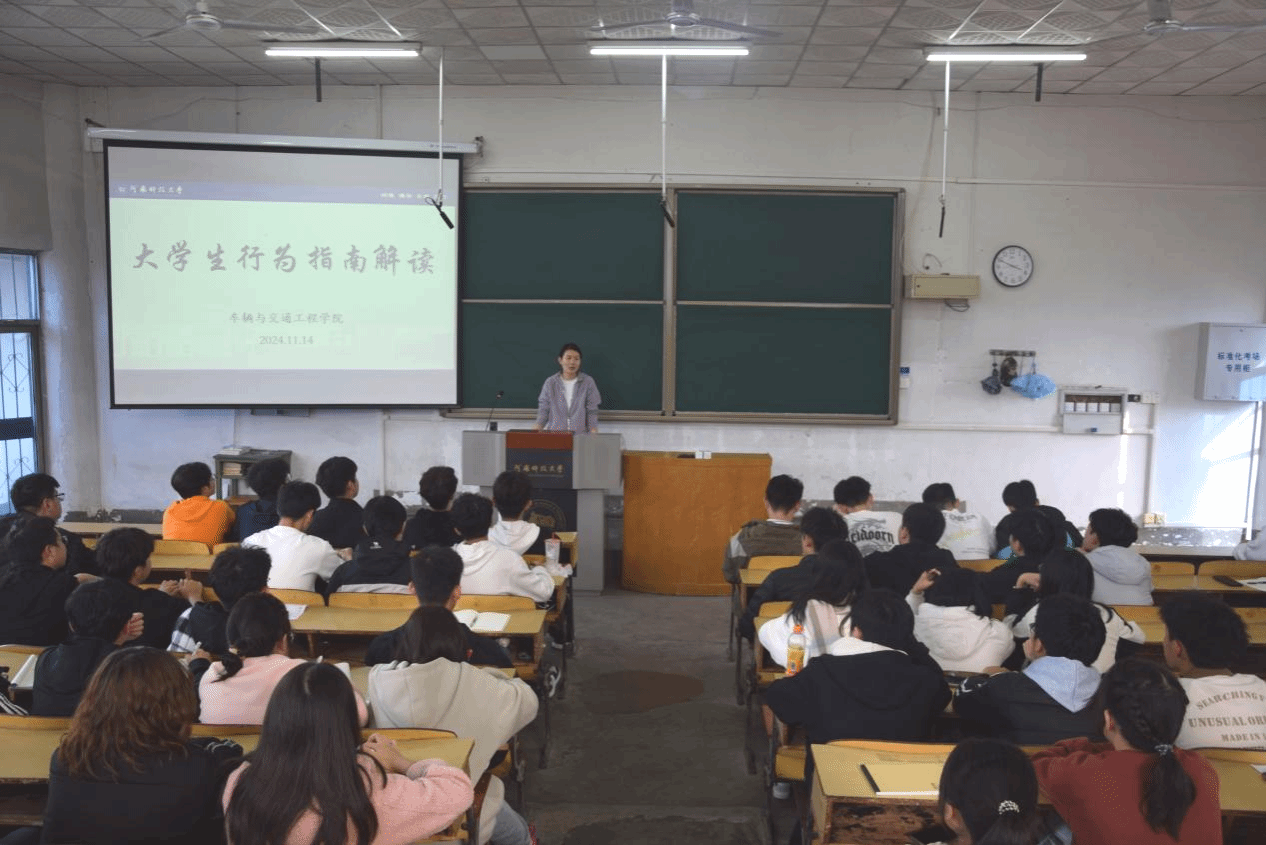 在西苑校区6号楼301教室开展《大学生行为指南》解读活动。本次活动由学院团委书记兼2024级辅导员索榕主讲,2024级新生班委参加。