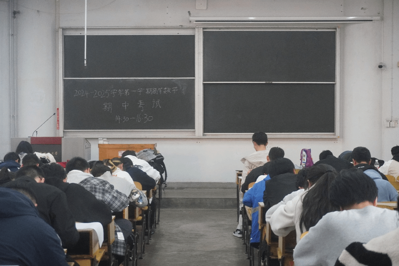 在西苑校区八号楼101、102教室举行2024级高等数学期中考试。考试由高珍珍老师担任主监考,学院学习部成员协助监考,2024级学生参加。