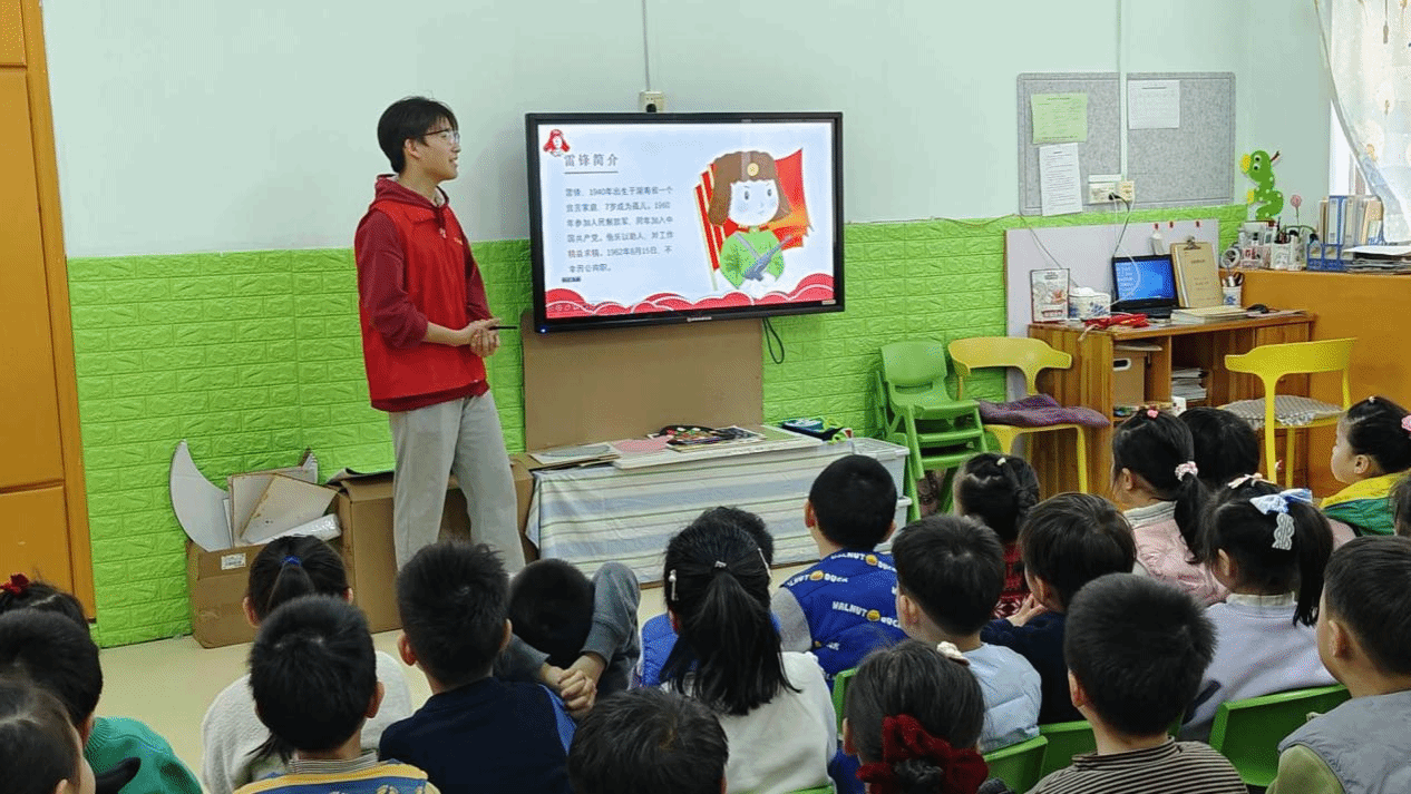 活动伊始,志愿者引导小朋友们坐定并陪同小朋友们观看有关雷锋事迹的主题动画。随后,“红”马甲宣讲团成员向小朋友们宣传了雷锋的生平事迹及雷锋精神的深刻内涵,引导他们向雷锋同志学习,用自己的实际行动争做当代小雷锋。最后,志愿者与小朋友们共同演唱了歌曲《学习雷锋好榜样》。