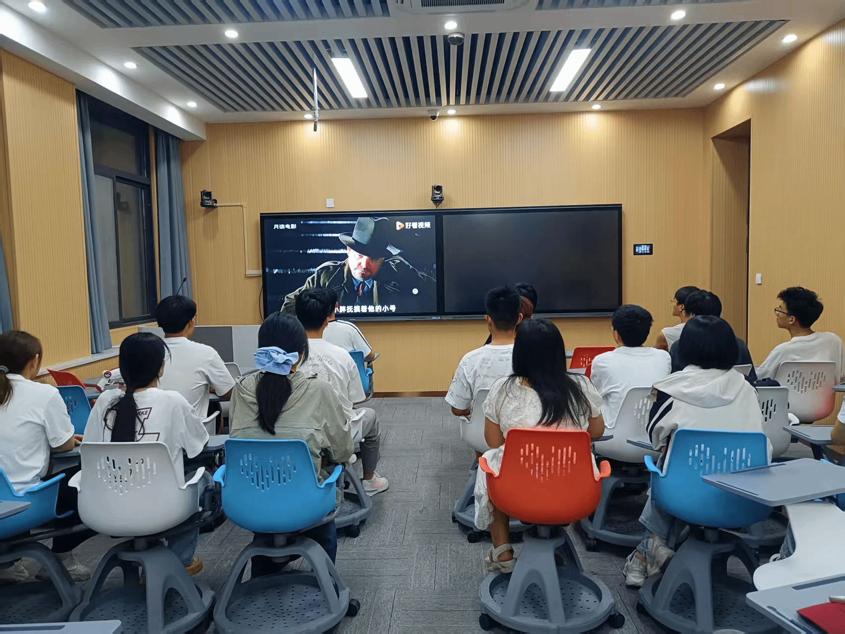 电影展期间,多部具有深刻思想内涵和艺术价值的影片被精心挑选出来进行展映,题材丰富多样,吸引了众多学生前来观看。展映现场座无虚席,同学们沉浸在精彩的电影情节中,随着剧情的发展,时而欢笑,时而感动。在每部影片放映结束后,同学们积极分享自己的观影感受,从电影的叙事手法、角色塑造,到影片所传达的价值观等方面进行深入探讨。