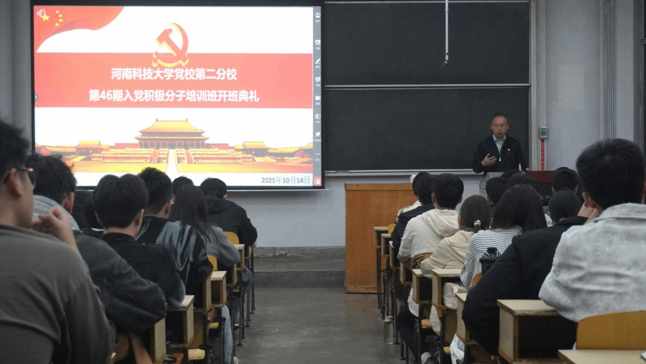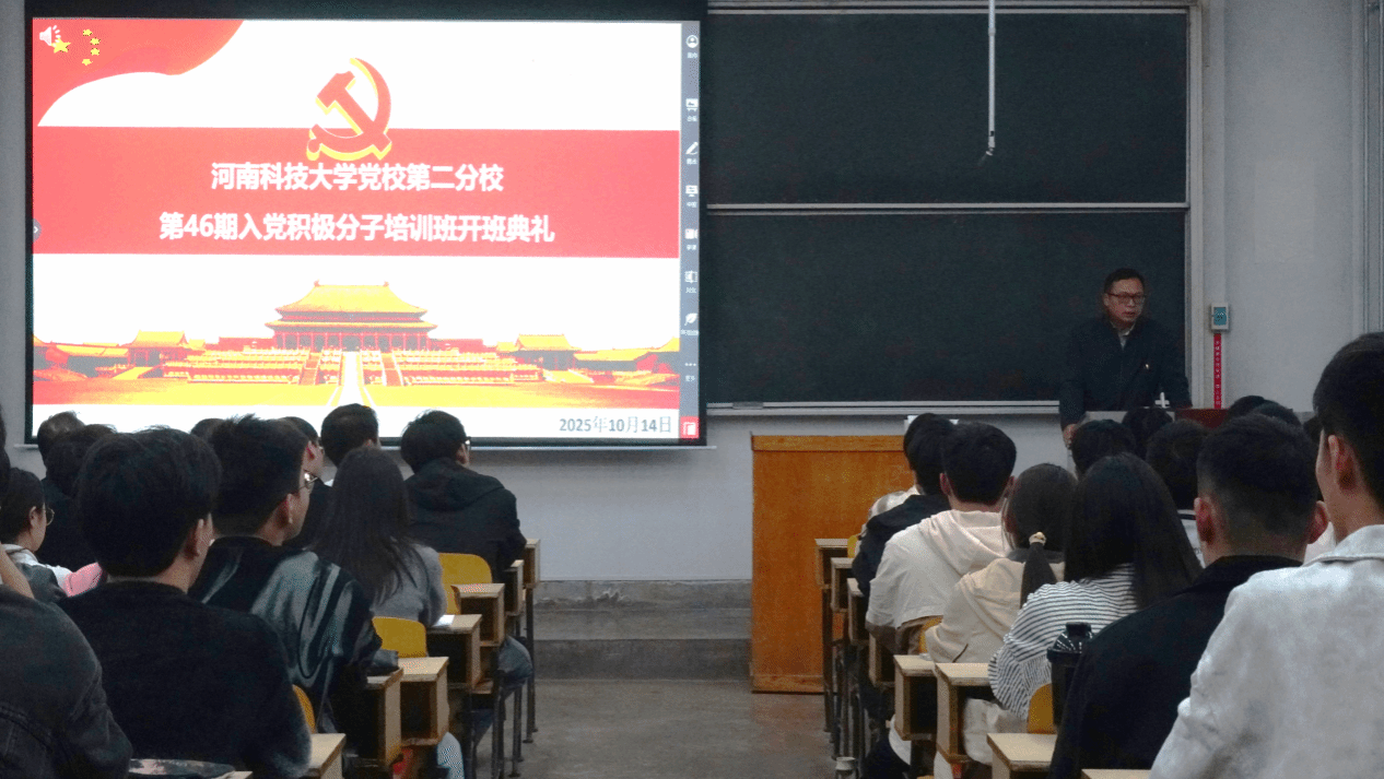 团委副书记兼2023级辅导员王裴君、车辆与交通工程2024级本科生辅导员焦雪猛以及第46期入党积极分子参加本次开班仪式。开班典礼由李艳红主持。
