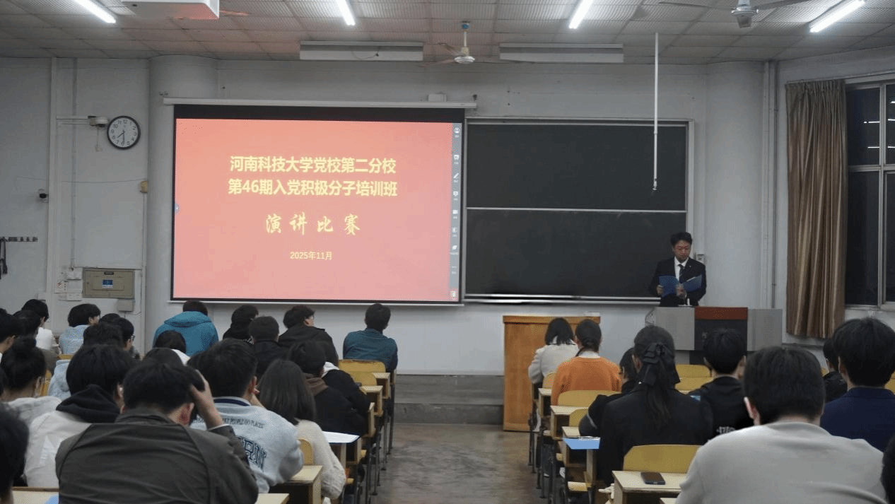 党校第二分校第46期入党积极分子培训班演讲比赛。学院党建工作科科长李艳红及入党积极分子负责人担任评委,第46届全体入党积极分子参与此次演讲比赛。