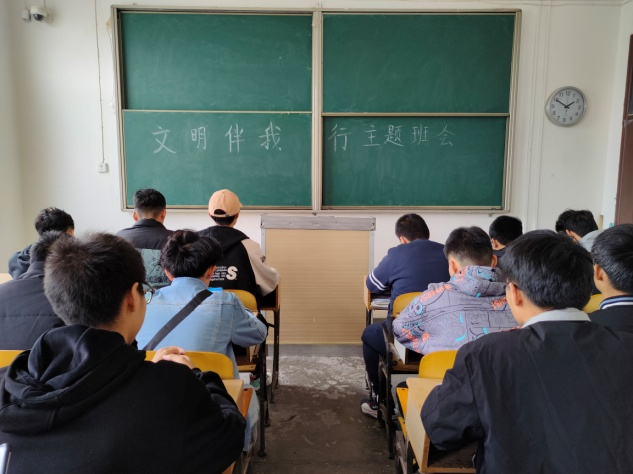 组织2021级新生在各班自习室开展“文明伴我行”主题班会。班会由各班班长主持,同学们积极参加。