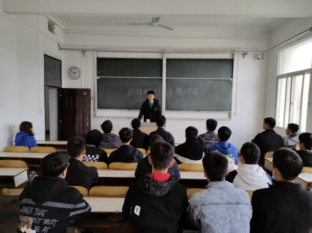 组织全体学生在各班自习室举办纪律规则主题班会。本次班会由各班班长主持。