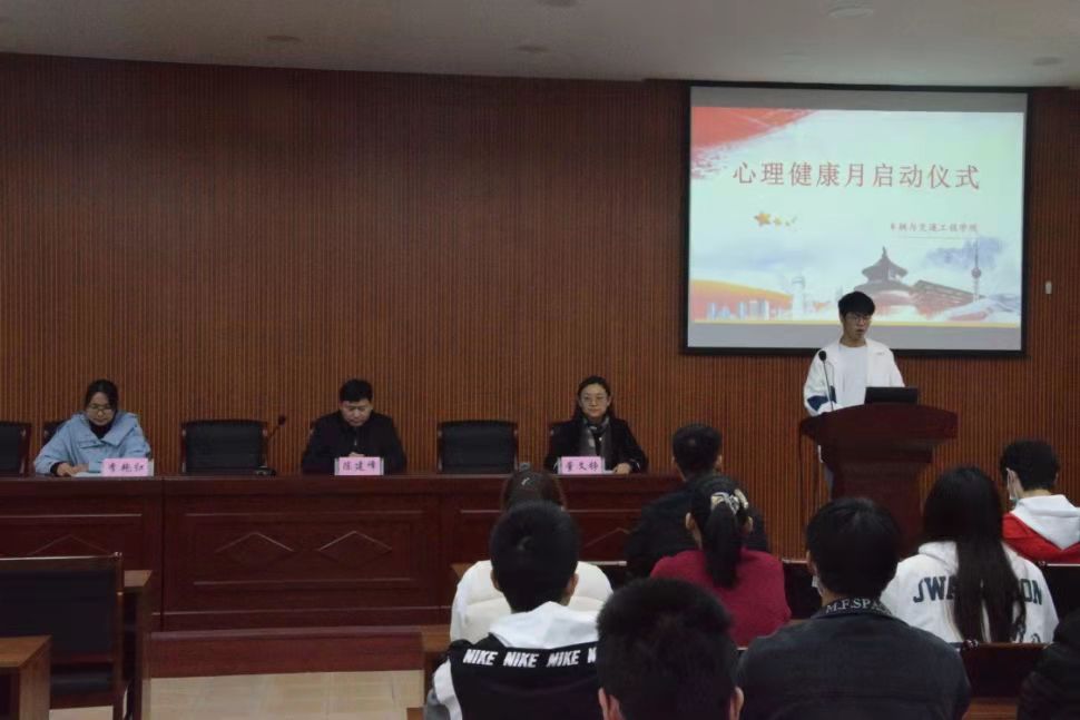 在西苑校区6号楼101室举办心理健康教育宣传月活动启动仪式。党委副书记陈建峰、学工办副主任兼21级辅导员董文铮、19级辅导员李艳红出席启动仪式,车辆学院各班学生代表参加。启动仪式由院心理健康部承办,文化部王昭举担任主持。