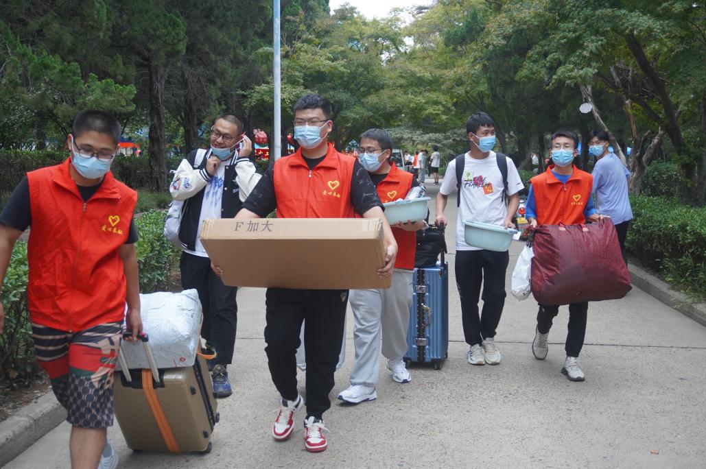 为了帮助新生更便捷的进入校园,学校在火车站、汽车站设立了迎新点,2022级新生可在迎新点乘坐学校大巴到达校园。新生通过严格的疫情防控检查入校后,志愿者引导其前往三号楼前学院报到处进行身份核验。随后,学院辅导员在学院报到处,帮助新生完成报到流程,亲力亲为的工作态度为学院树立了良好的形象。最后,志愿者们帮助新生搬运行李并引领新生前往宿舍。迎新工作如火如荼的进行着,到处都是志愿者们忙碌的身影,校园内四处洋溢新学期开学的喜悦。