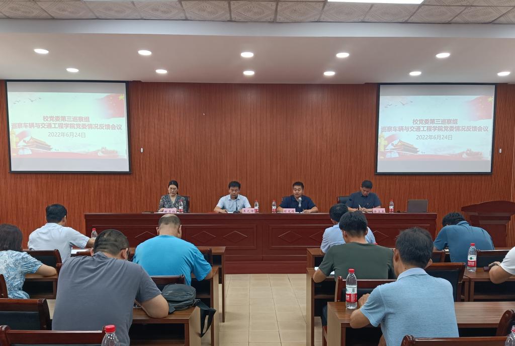 党委情况反馈会议召开。巡察组分组长吴元坤向学院党委领导班子反馈了巡察情况,巡察组组长程光耀受党委巡察工作领导小组委托提出整改要求,学院党委书记田志红作表态发言,学院院长徐立友主持会议。会前,巡察组组长、分组长向学院党委书记、院长反馈了意见。