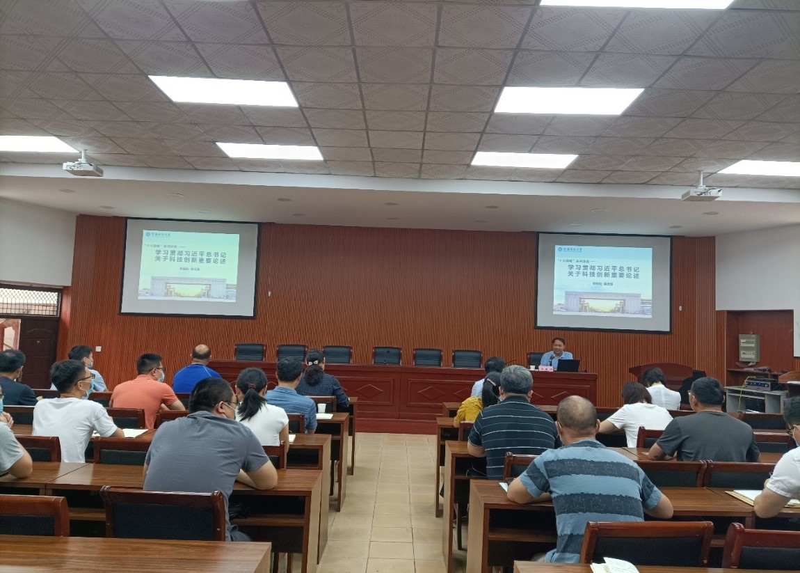 在西苑校区6号楼101会议室举办“十大战略”专题讲座。科技处处长吴庆涛应邀作题为《学习贯彻习近平总书记关于科技创新重要论述》专题讲座。科技处一行8人和学院领导班子成员、党支部书记、系室主任、科研骨干聆听了讲座。讲座由学院党委书记田志红主持。
