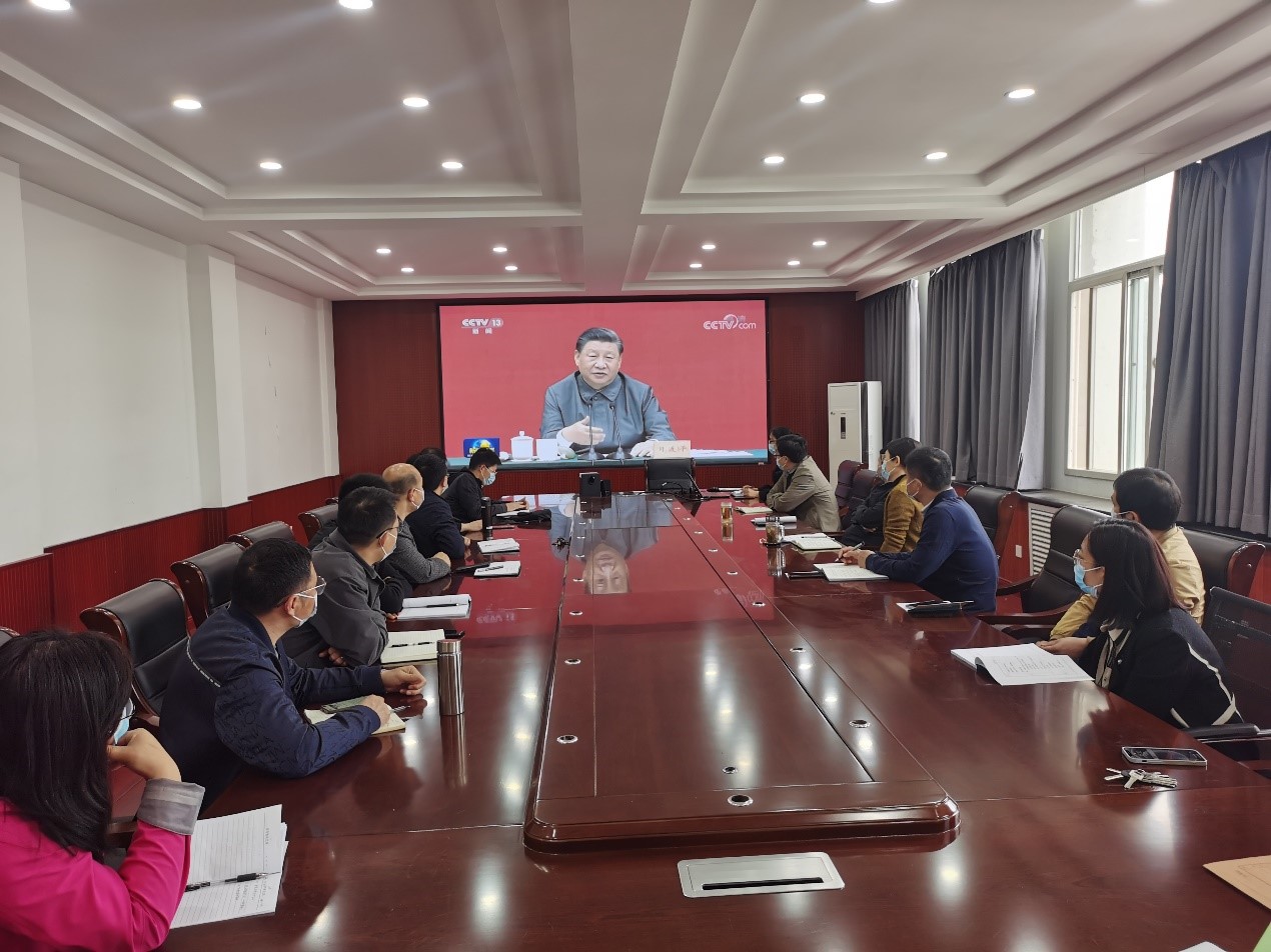 会上,大家集中观看了习近平总书记考察中国人民大学的新闻联播视频。习近平总书记在五四青年节前夕来到中国人民大学考察调研并发表重要讲话,对思政课、师资队伍建设、学科发展、青年学生成长成才和我国高等教育办学发展方向提出明确要求,并对全国广大青年提出殷切希望,希望全国广大青年牢记党的教诲,立志民族复兴,不负韶华,不负时代,不负人民,在青春的赛道上奋力奔跑,争取跑出当代青年的最好成绩!