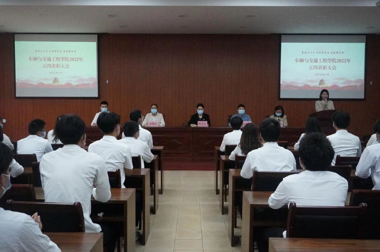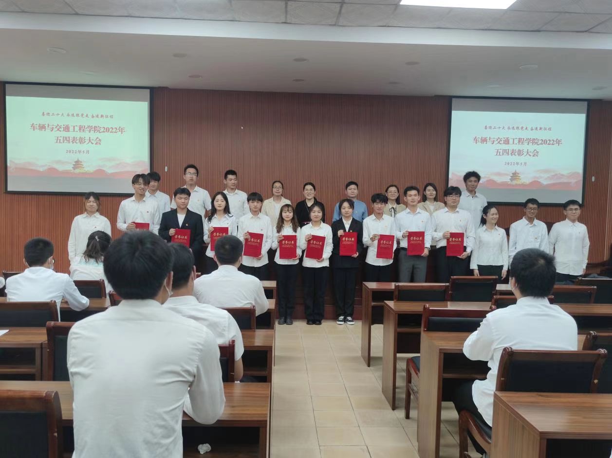 在6号楼101会议室召开2022年“五四”表彰大会。院党委书记田志红、党委副书记陈建峰、学工办副主任兼21级辅导员董文铮、组织员兼19级辅导员李艳红、18级辅导员张亮亮出席大会,车辆学院优秀团干部、优秀团员代表等40人参加大会。会议由学院团委书记索榕主持。